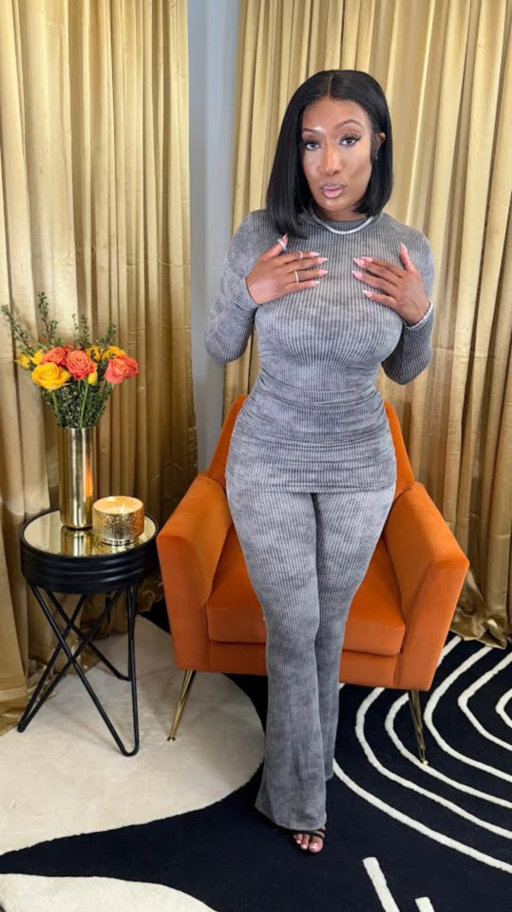 The Yanna Ribbed Set is your new go-to for laid-back confidence and figure-hugging comfort. Designed with premium ribbed stretch fabric, this two-piece set features a long-sleeve, curve-enhancing top with a slightly ruched waistline and perfectly fitted flare pants that move with you.